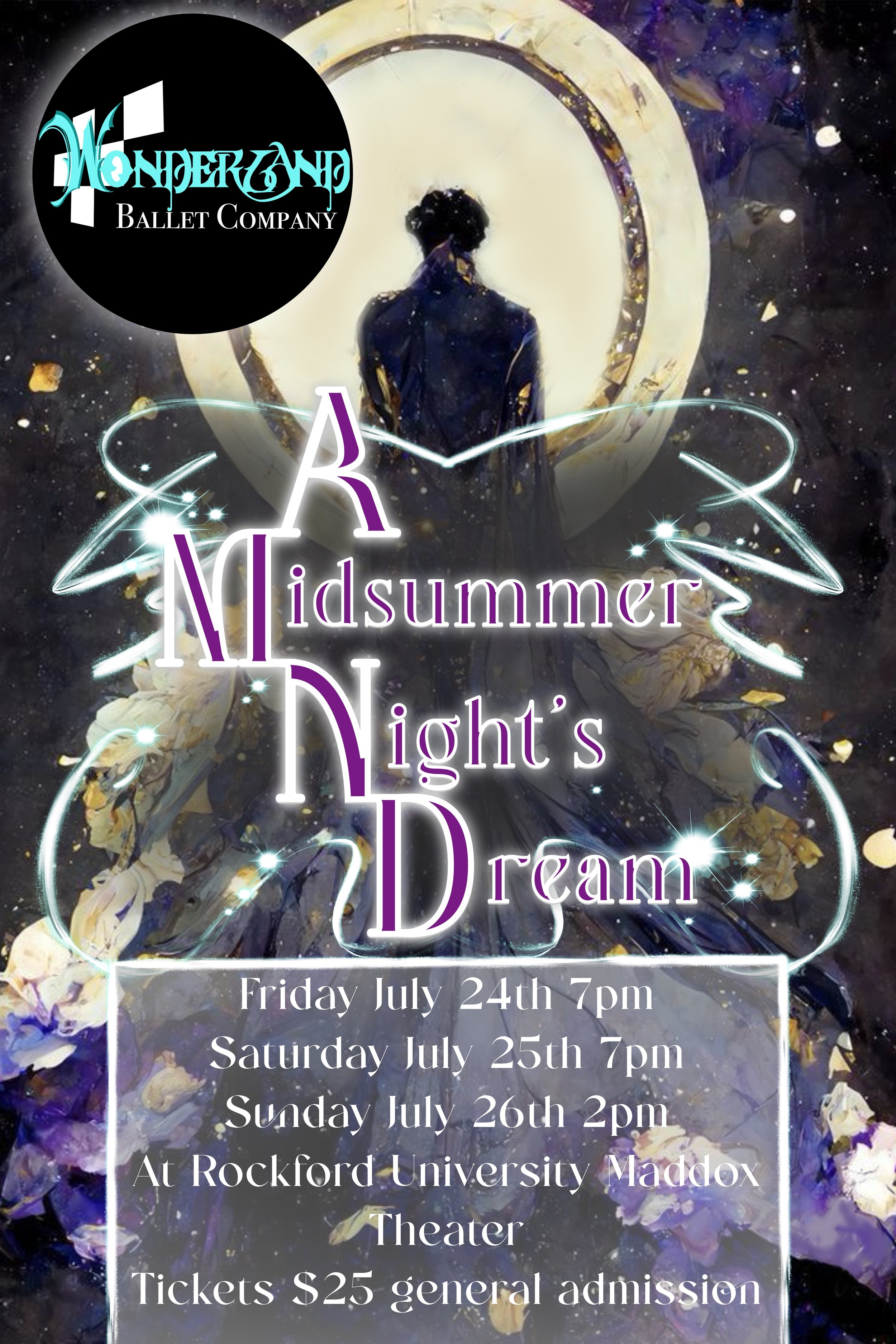 Our cast includes our Wonderland Company members, 3 of our Pre-Professional Principal dancers, as well as dancers from CAPA West, Evolve Dance Company, WSSR, Starlight Theater, CLI conservatory, WMU, and featuring our Ballerino Premier “Sterling Ford” in the role of PUCK.